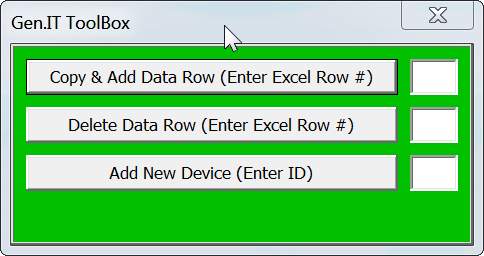 A macros has been associated with the Gen.IT icon shown on the Device and Data tabs within the sample spreadsheets.